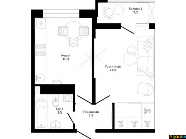 "Внимание!Просторная и светлая однокомнатная квартира для жизни и отдыха!