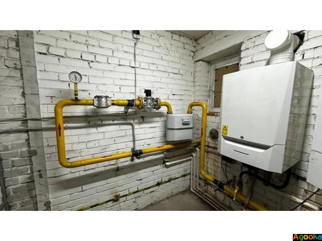Отопление: газовое — 2 новых котла + 8 калориферов
